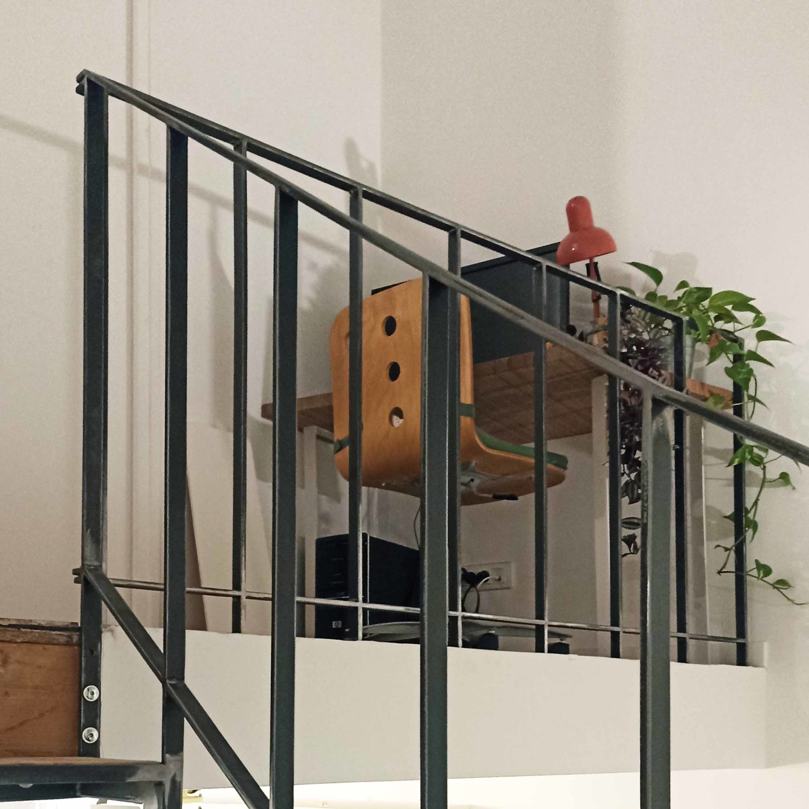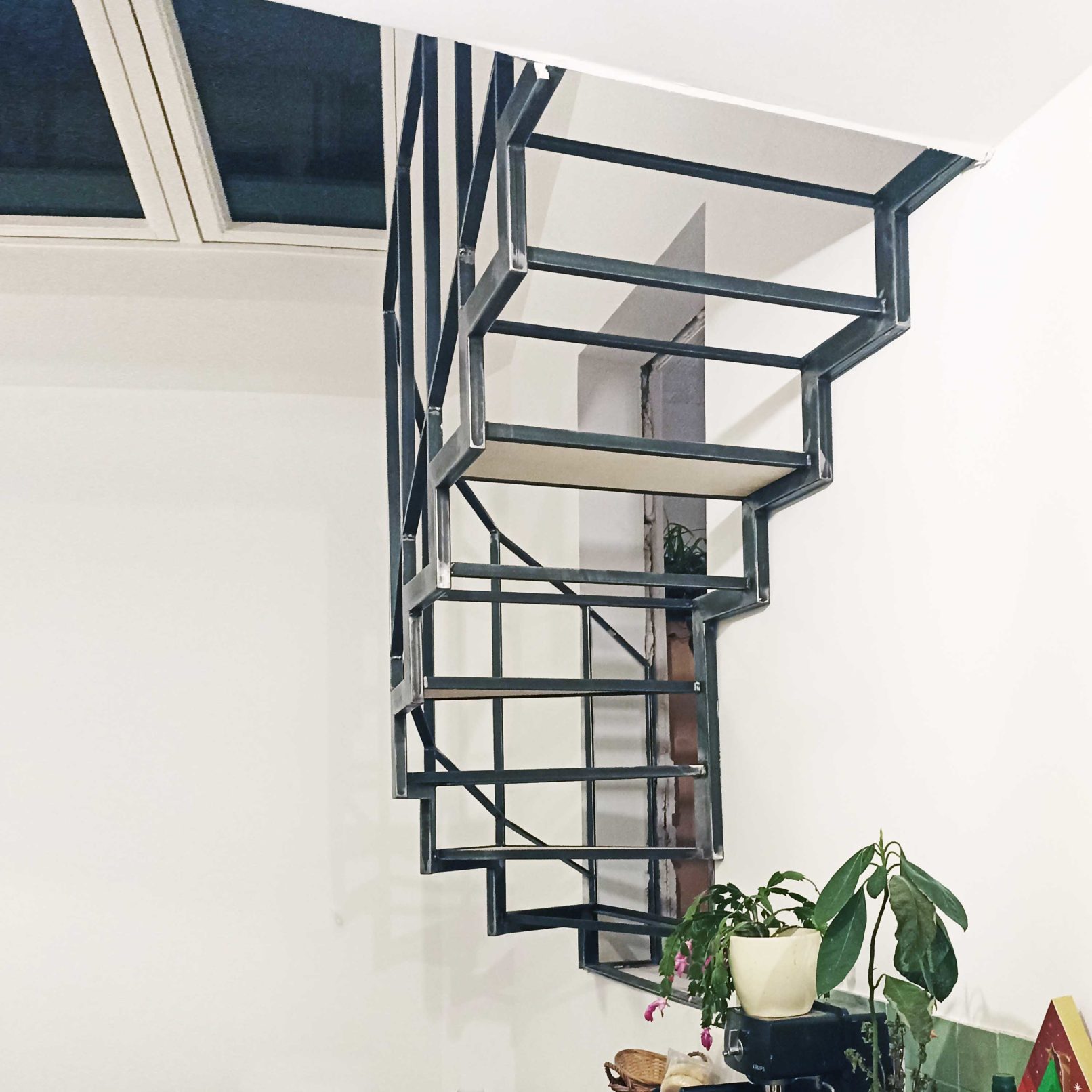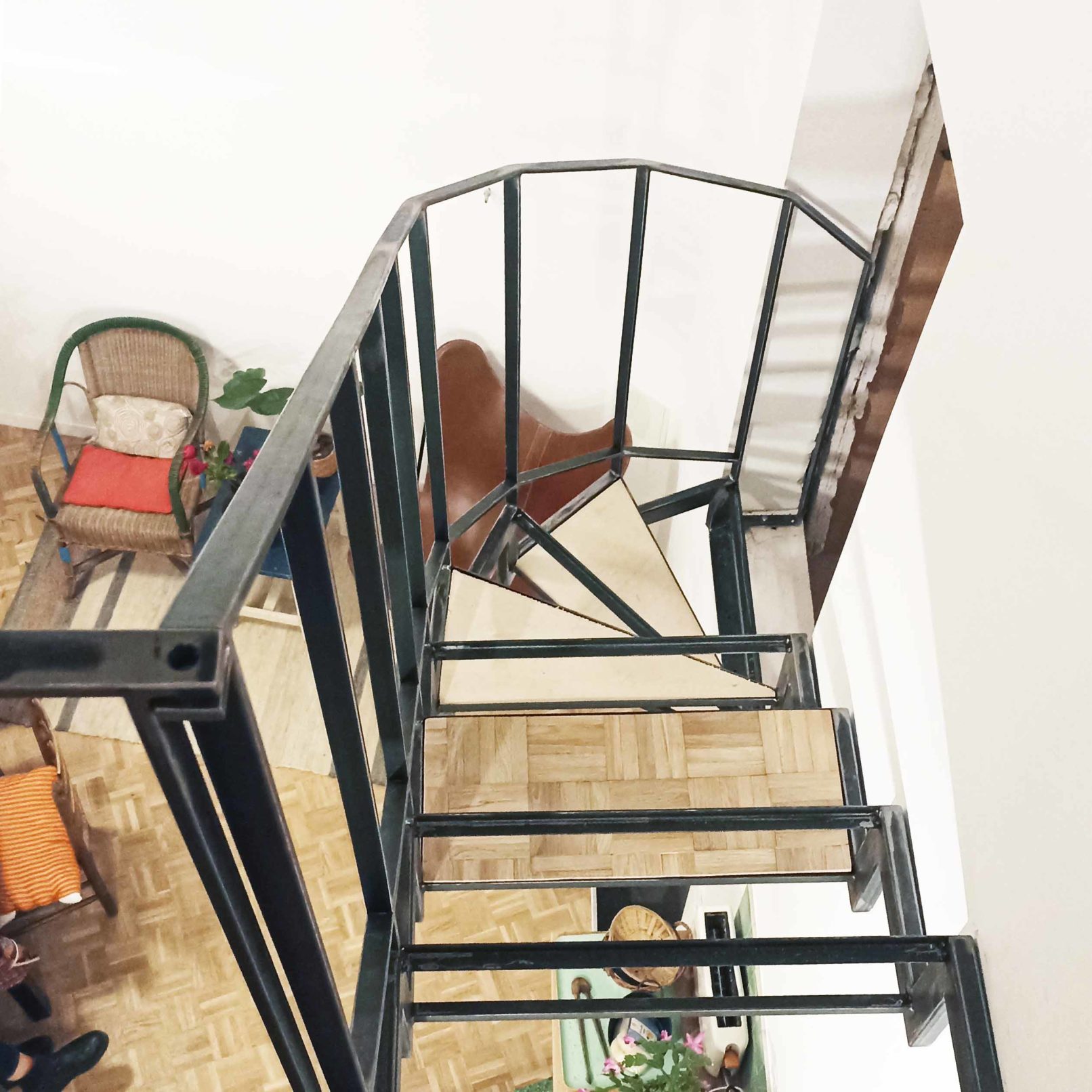Structure d’escalier en acier brut huilé. Marches prévues par les clients.